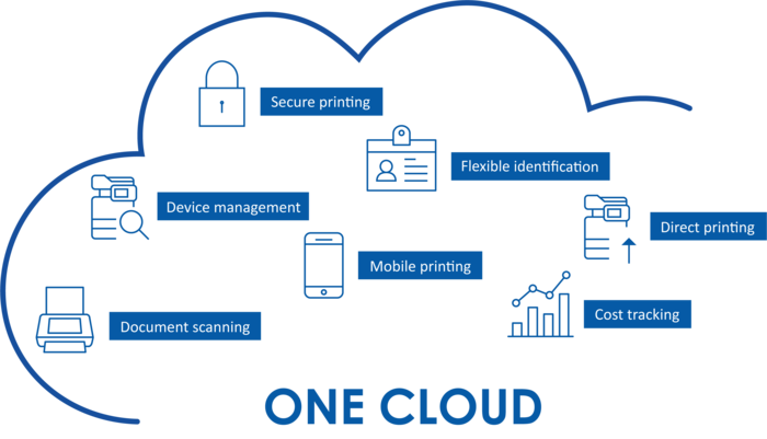 Unternehmen, die Cloud-Dienste in Anspruch nehmen, können dadurch ihren Flexibilität erhöhen und von geringeren Ausgaben bei den Computerressourcen profitieren. Das Druck- und Scanmanagement in der Cloud reduziert die IT-Belastung durch die Abschaffung von Servern und erhöht die Produktivität im Büro dank vereinfachter Druck- und Scanprozesse.