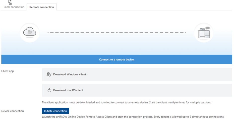 The demand for fast, efficient end user service and troubleshooting is a crucial driver for IT helpdesks. Connecting to multi-functional devices is often impossible due to the absence of local support staff or the device's isolation within Zero Trust networks. uniFLOW Online 2024.4 provides a secure, direct remote connection to Canon imageRUNNER ADVANCE devices anywhere. An Internet connection is the only prerequisite.