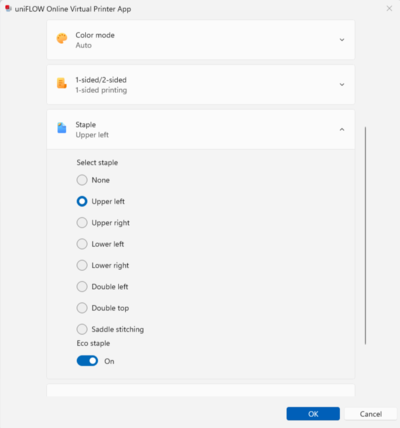 As use of the Windows Modern Print Platform grows, uniFLOW Online’s Virtual Printer App evolves to meet user needs. The latest update introduces new finishing options and improved default settings, offering a more streamlined and flexible printing experience while maintaining the app’s lightweight design.